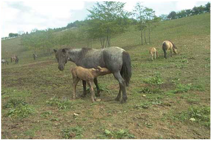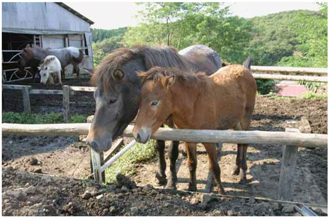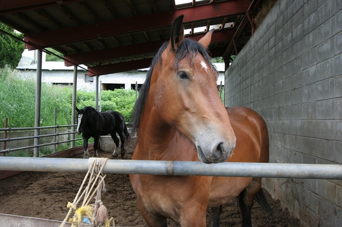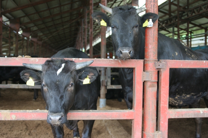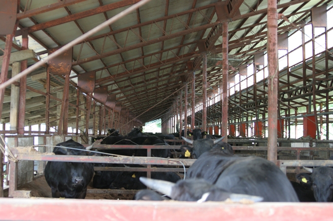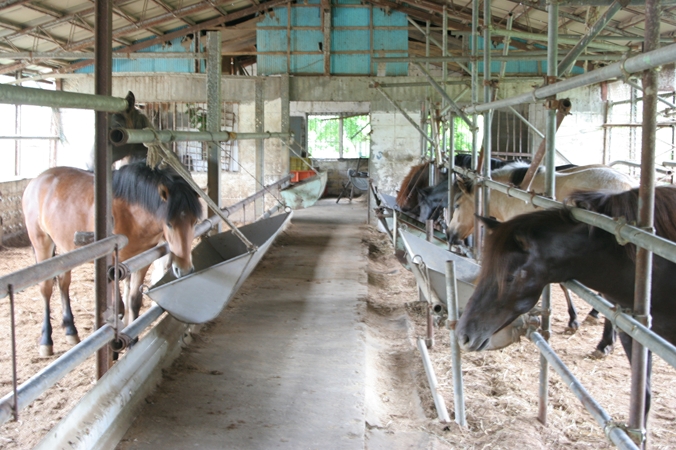 3万坪の広大な敷地で、黒毛和牛600頭・肉用馬100頭を肥育しています。山からの良質な水と、遺伝子組換えをしていない飼料を独自に配合したエサは、安全で安心です。
